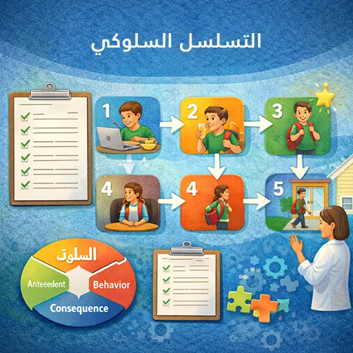 2. التمييز بين أنواع التسلسل السلوكي الثلاثة (الأمامي، الخلفي، الكلي).