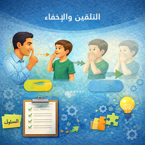 يزوّد هذا البرنامج التدريبي المتدربين بالمعرفة والمهارات اللازمة لاستخدام استراتيجيات التلقين والإخفاء بشكل فعّال وفي هذا البرنامج، سيتعرف المشاركون على أنواع التلقين، وطرق تطبيقها، وكيفية تقليل الاعتماد على المساعدة للوصول إلى الاستقلالية في أداء المهارات وهذا مايسمى الإخفاء أو التلاشي. ويقدّم